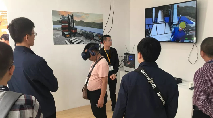 為了讓到訪客戶更快、更直觀了解鐵拓機械這臺“龐然大物”展品——逆流式瀝TSEC5030型逆流式瀝青廠拌熱再生一體設備,鐵拓機械在展臺內部特設了VR虛擬現實體驗室。頭戴VR頭盔眼鏡,即可在虛擬現實中360度體驗設備各個結構以及設備運轉動態, 讓你的感官仿佛身臨其中。此次展示VR體驗技術,給鐵拓機械展臺增添了科技元素,也給客戶帶來更多形式的體驗。