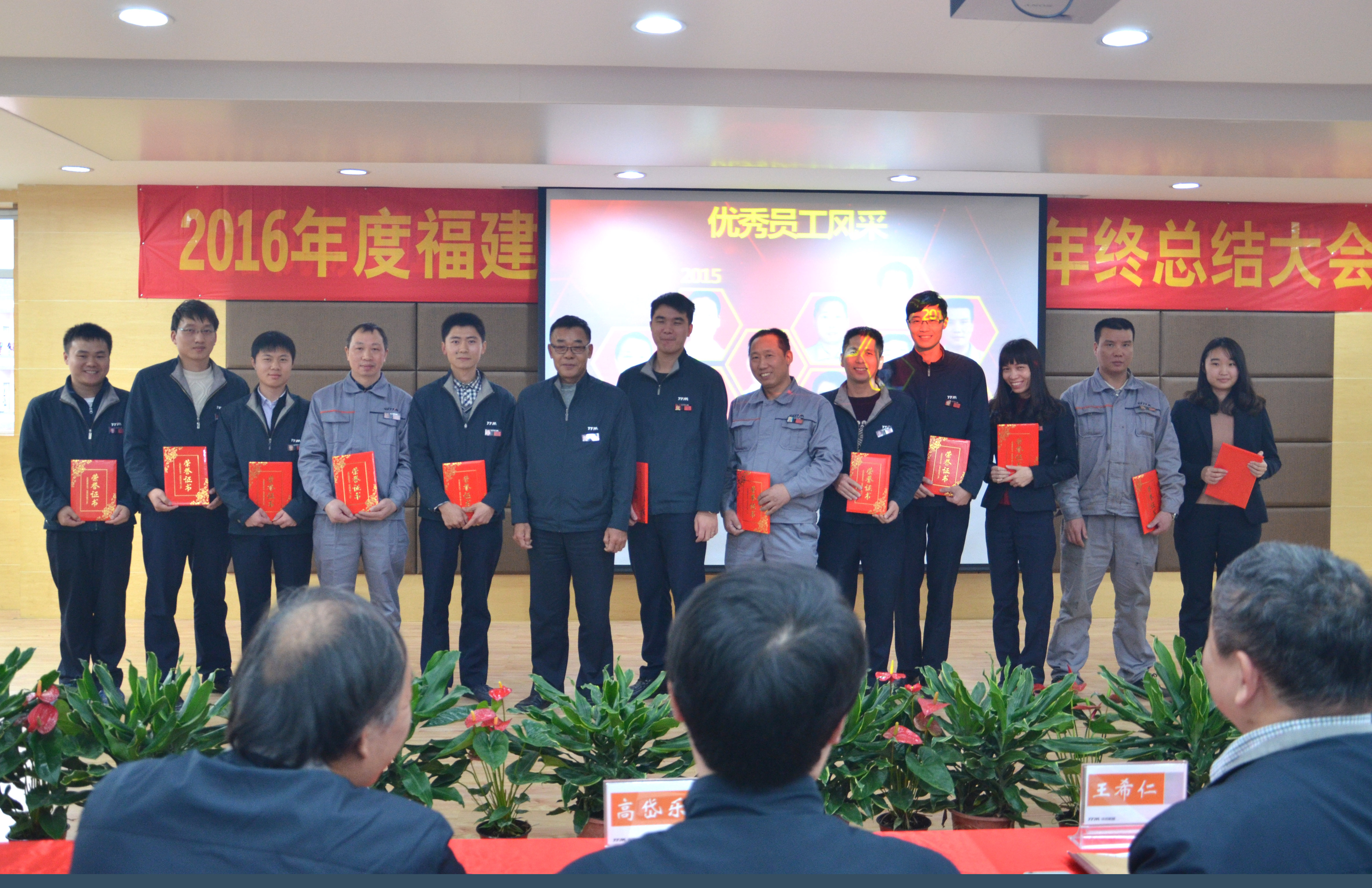 大會最后,鐵拓機械董事長王希仁、首席質量官蘇原豊及全體高管,對獲得年度“優秀員工”“優秀管理者”的員工進行表彰,以茲鼓勵。