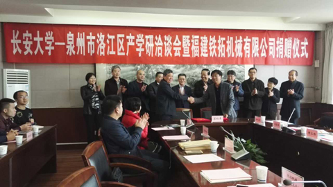 2017年3月23日上午,長安大學--泉州市洛江區(qū)產(chǎn)學研洽談會暨福建鐵拓機械有限公司捐贈儀式在長安大學隆重舉行。泉州市洛江區(qū)副區(qū)長杜韶山一行領導、鐵拓機械董事長王希仁應邀參加此次交流洽談。長安大學副校長謝軍占以及來自社會合作處、工程機械學院、繼續(xù)教育學院相關負責人、師生代表出席此次座談。