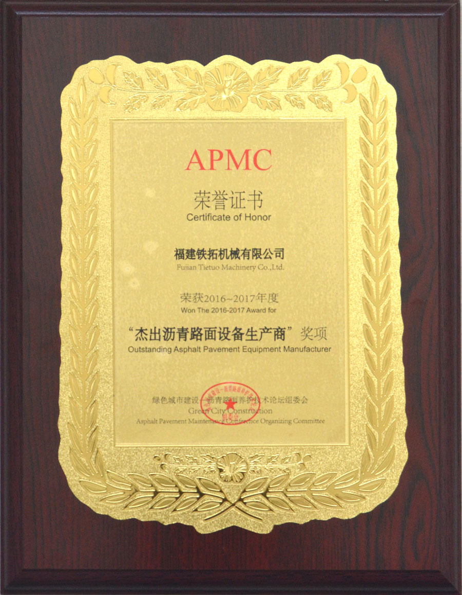 鐵拓機械榮獲“2016-2017年度杰出瀝青路面設備生產商”