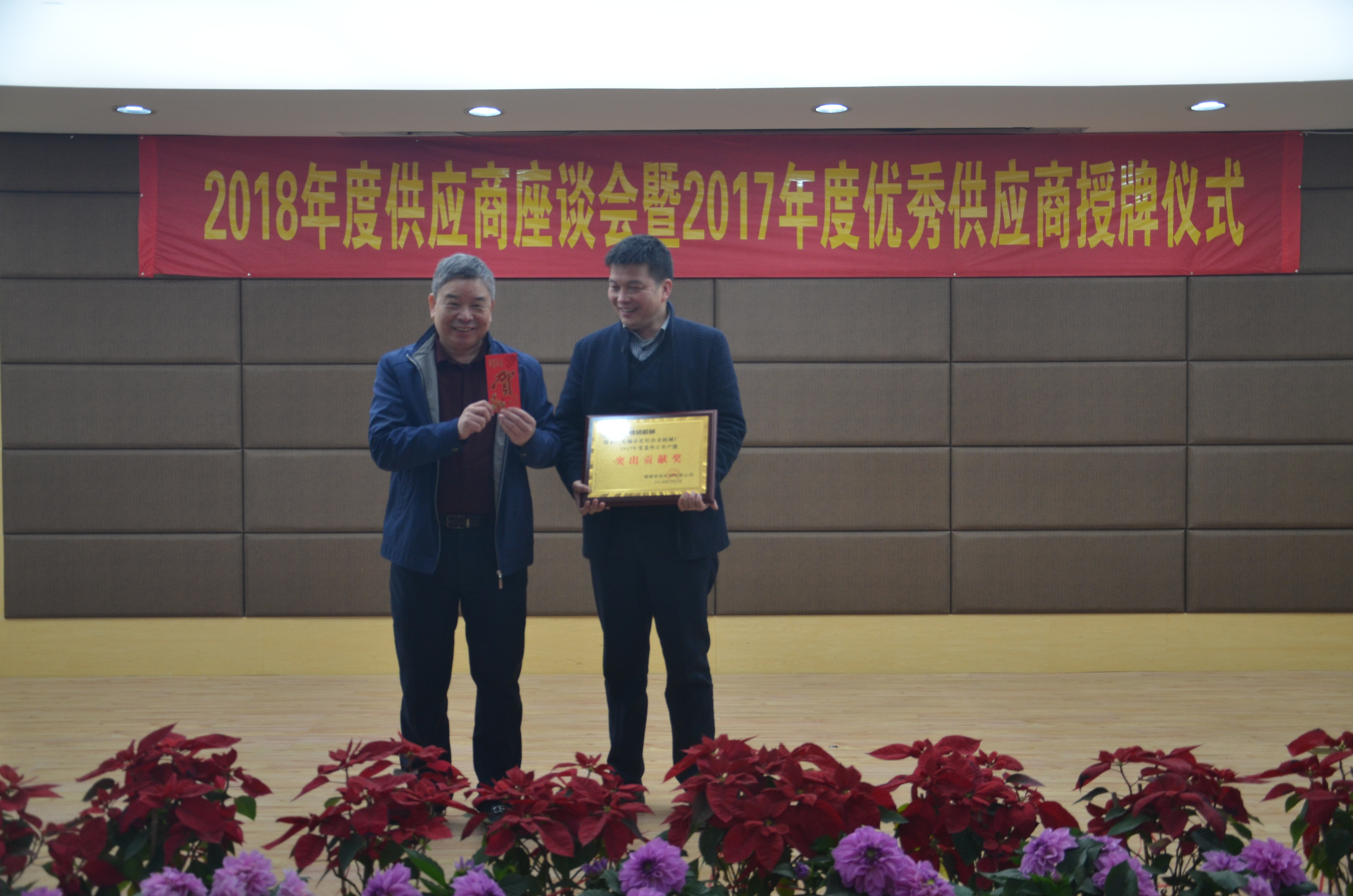 公司授予福建省閩旋科技股份有限公司、廈門美達斯環(huán)保工業(yè)有限公司、泉州自強鏈條有限公司“2017年度優(yōu)秀供應商”稱號