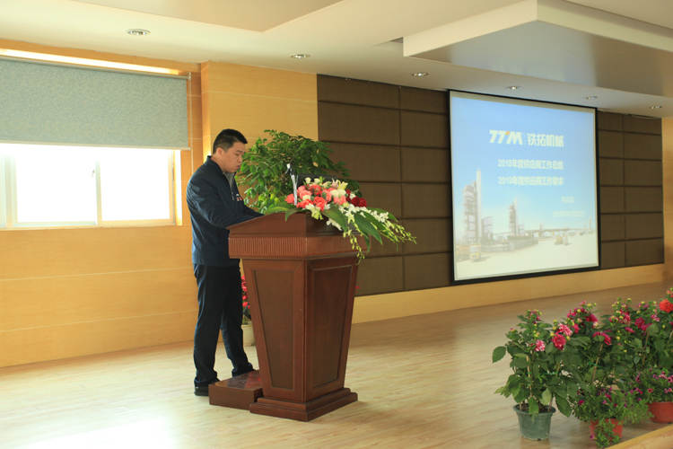 會上,董事長王希仁率先代表鐵拓機械致歡迎辭和新年祝福,對供應商代的到來表示熱烈歡迎。隨后,鐵拓機械相關中心部門負責人進行相關工作匯報與分享,與供應商代表針對2018年工作進行了詳細的總結與交流,并闡述了2019年的發展規劃和經營思路,以提升品質為重點,對全面優化供應商體系提出新的要求和期望。
