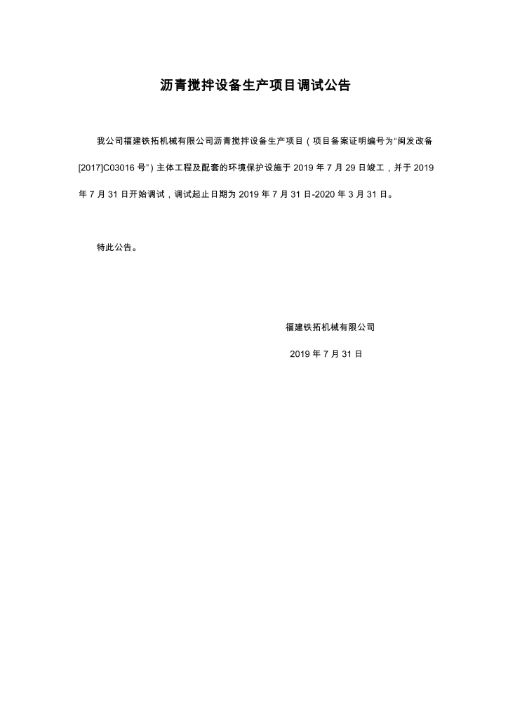 返回列表 31 2019-07 瀝青攪拌設備生產項目調試公告 2019-07-31 訪問量:2803 訪問類型:公司新聞 字號 A- A A+ 上一條 熱烈慶祝中國人民解放軍建軍92周年 2019.08.01 下一條 鐵拓機械安徽地區又添廠拌熱再生新成員 2019.07.31
