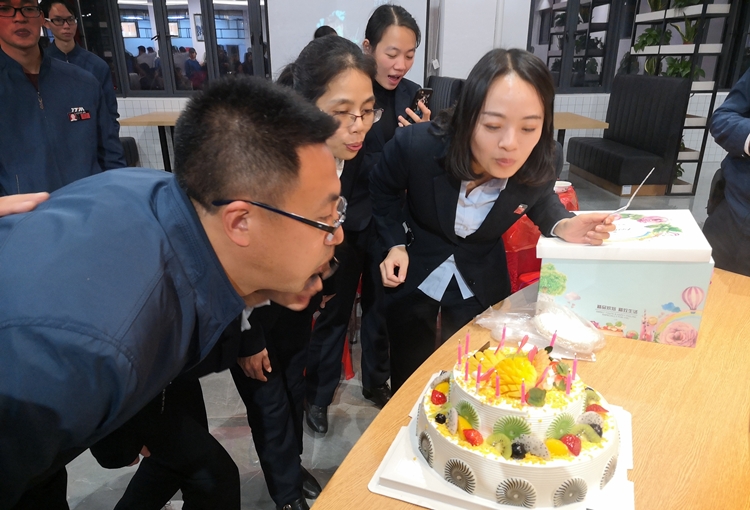 “祝你生日快樂”,伴隨著歌聲,一個閃著燭光的生日蛋糕呈現在大家面前,這是鐵拓機械在為員工過集體生日。為弘揚企業文化,讓員工感受到鐵拓大家庭的溫暖,表達對全體員工長期以來辛勤工作的肯定和感謝,12月18日晚上,鐵拓機械在公司食堂為員工舉辦了遷入新廠后的第一個生日宴會。