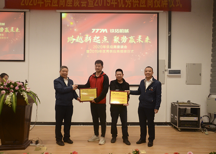 大會最后,鐵拓機械向為公司發展做出突出貢獻的供應商授予“年度優秀供應商”稱號,公司高層領導親自為獲得“2019年度優秀供應商”的企業頒獎授牌。