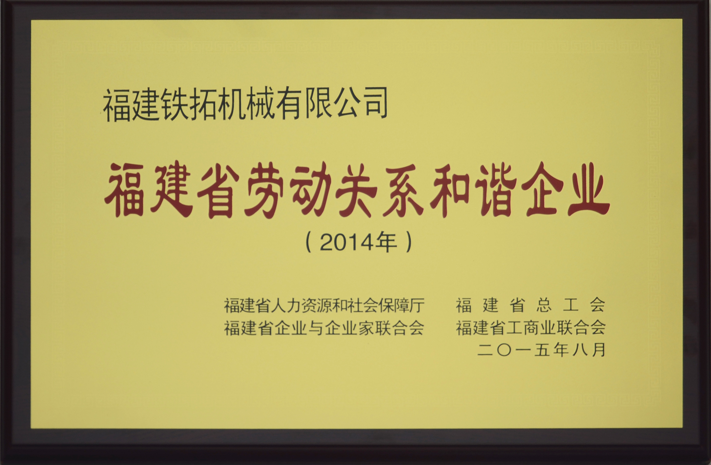 鐵拓機(jī)械榮獲“福建省勞動(dòng)關(guān)系和諧企業(yè)”