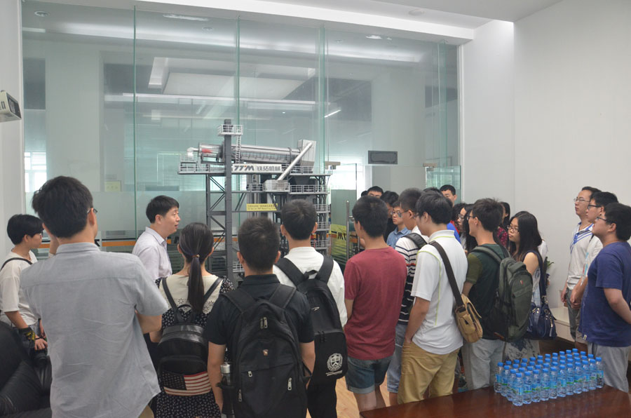 在鐵拓機械副總經理高岱樂的陪同下,清華大學博士生實踐團參觀考察了公司產品模型展廳、榮譽展廳以及技術研發中心。在高總的耐心講解下,了解了公司自主研制的瀝青攪拌設備產品系列以及瀝青再生前沿技術的研發應用。