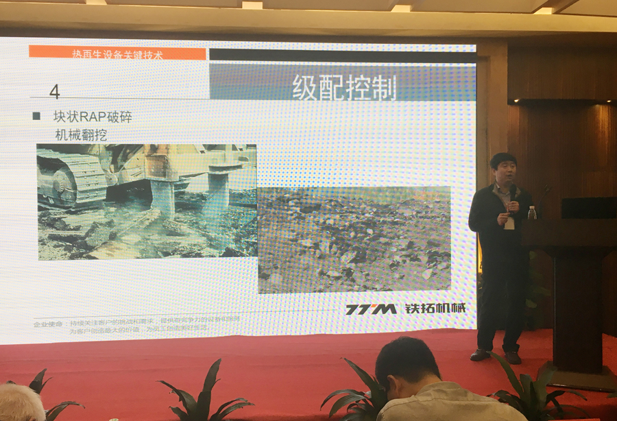 論壇上,福建鐵拓機械有限公司副總經理高岱樂作為演講嘉賓,就瀝青混合料廠拌熱再生設備的關鍵技術做主題演講,與在座專家、教授、用戶單位等分享鐵拓再生技術成果。在接下來的高端對話環節,高總又與現場參會嘉賓互動,耐心地回答現場嘉賓的提問。