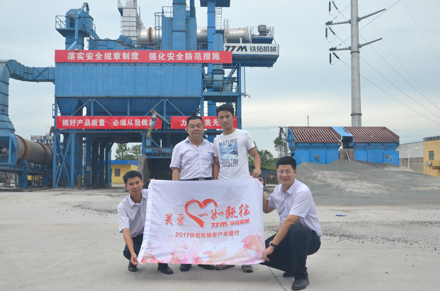 7月1日,鐵拓機械服務小隊抵達江西撫州,來到客戶關愛行活動的首個瀝青廠拌熱再生設備工地。該工地設備為鐵拓機械RLBZ1000型瀝青廠拌熱再生設備,與客戶原有的2000型瀝青攪拌設備進行配套使用。