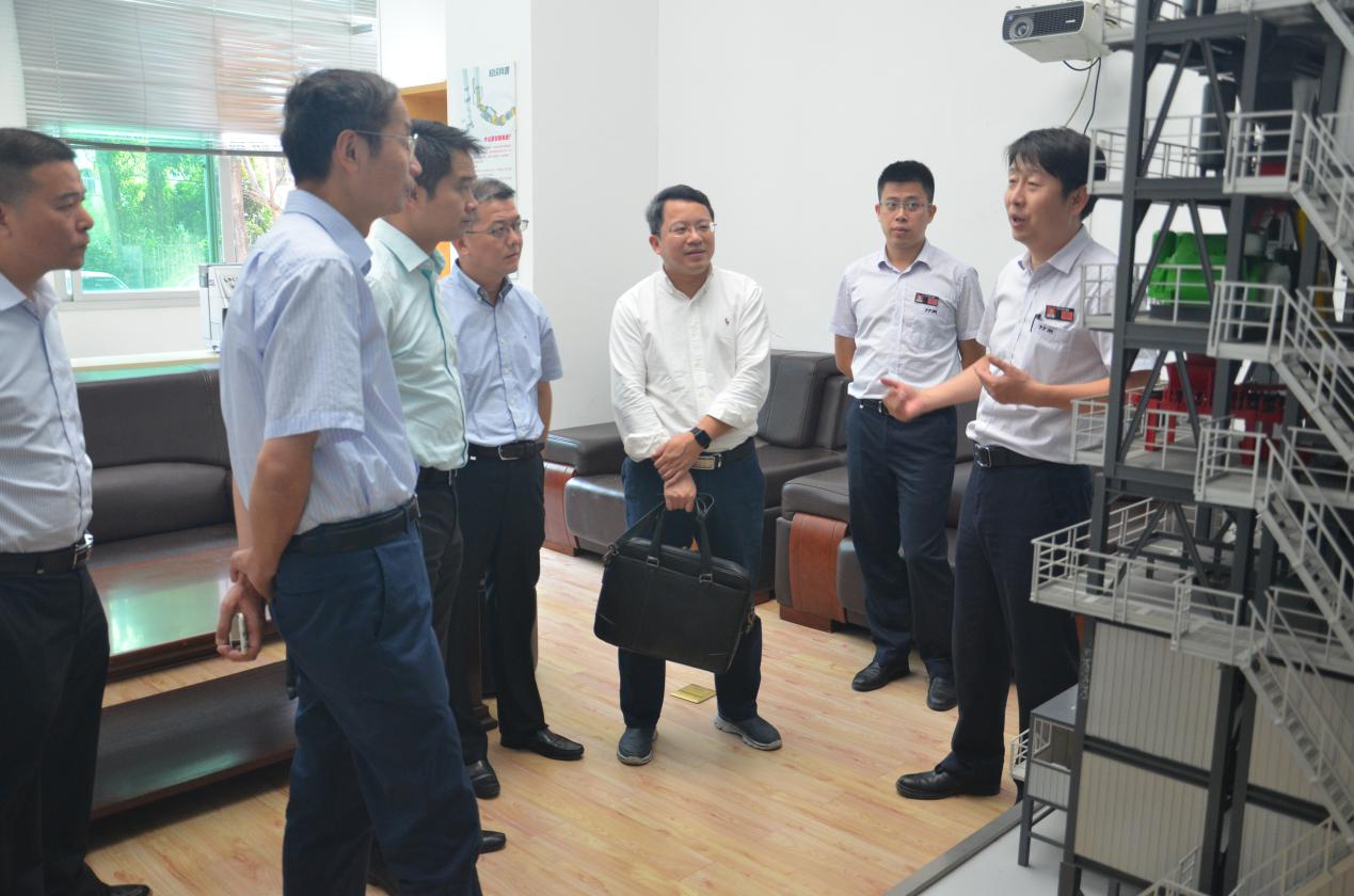 一行領導在副總經(jīng)理高岱樂的陪同下率先參觀鐵拓機械展廳和產品模型,了解鐵拓機械近年來在技術研發(fā)上面取得的創(chuàng)新成果。期間高總還向領導們介紹了鐵拓機械“單項冠軍”產品——瀝青廠拌熱再生設備。產品能夠節(jié)約資源、保護環(huán)境的特性得到一行領導認可。