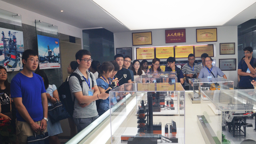記者團走進鐵拓機械生產車間,探訪大型瀝青攪拌設備的制造流程和工藝。