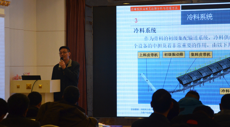 鐵拓機械技術研發中心經理揭文忠為學員們講授《瀝青攪拌設備常見故障分析與處理方法、溝通答疑》