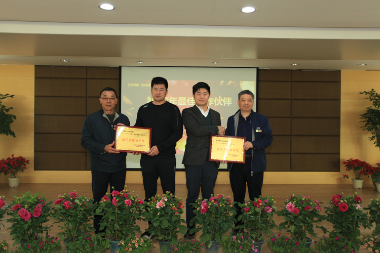 會議最后,鐵拓機械對2018年度優秀供應商進行頒獎授牌,授予信和新材料股份有限公司、晉江市佳家興機電貿易有限公司“2018年最佳合作伙伴”稱號。